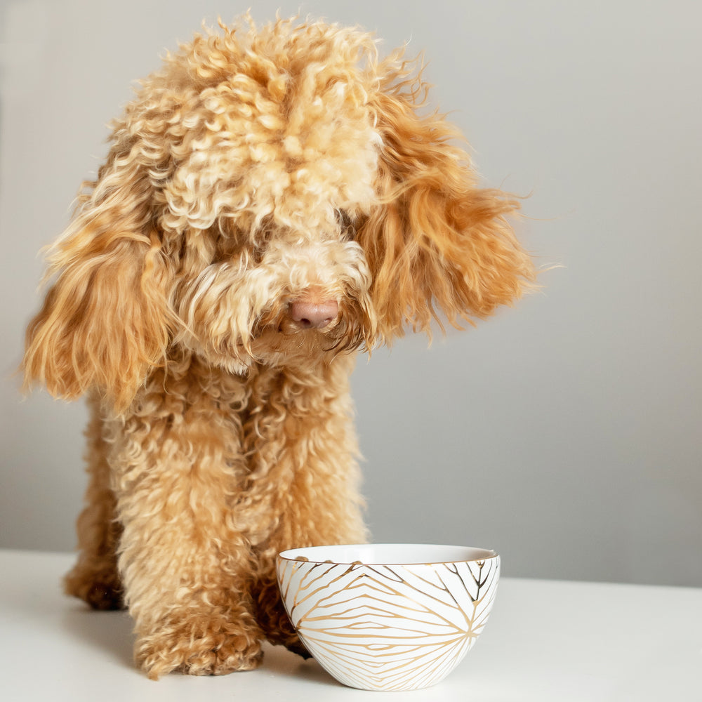 Talianna Lily Pad Dog and Dessert Bowls, White & Gold, Set of 4