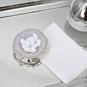 The Casca Gemstone Bowl is known for making chocolates, mints, nuts, (and even skittles) look good. We carve them from the most premium semi-precious gemstones, thought to bring calmness to your home, and add pure silver on the edges.